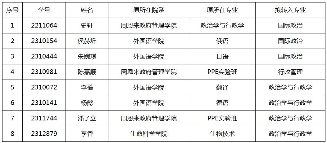 太阳成集团tyc234cc关于2024年转专业录取结果的公示
