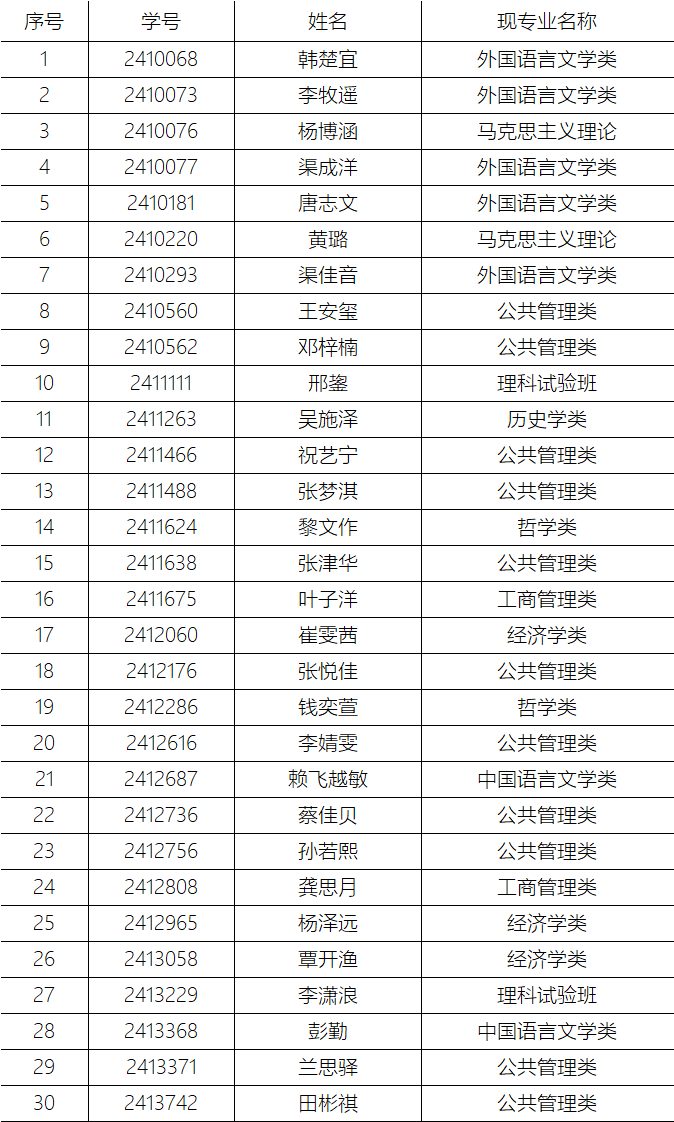 太阳成集团tyc234cc关于2024级PPE实验班录取结果的公示