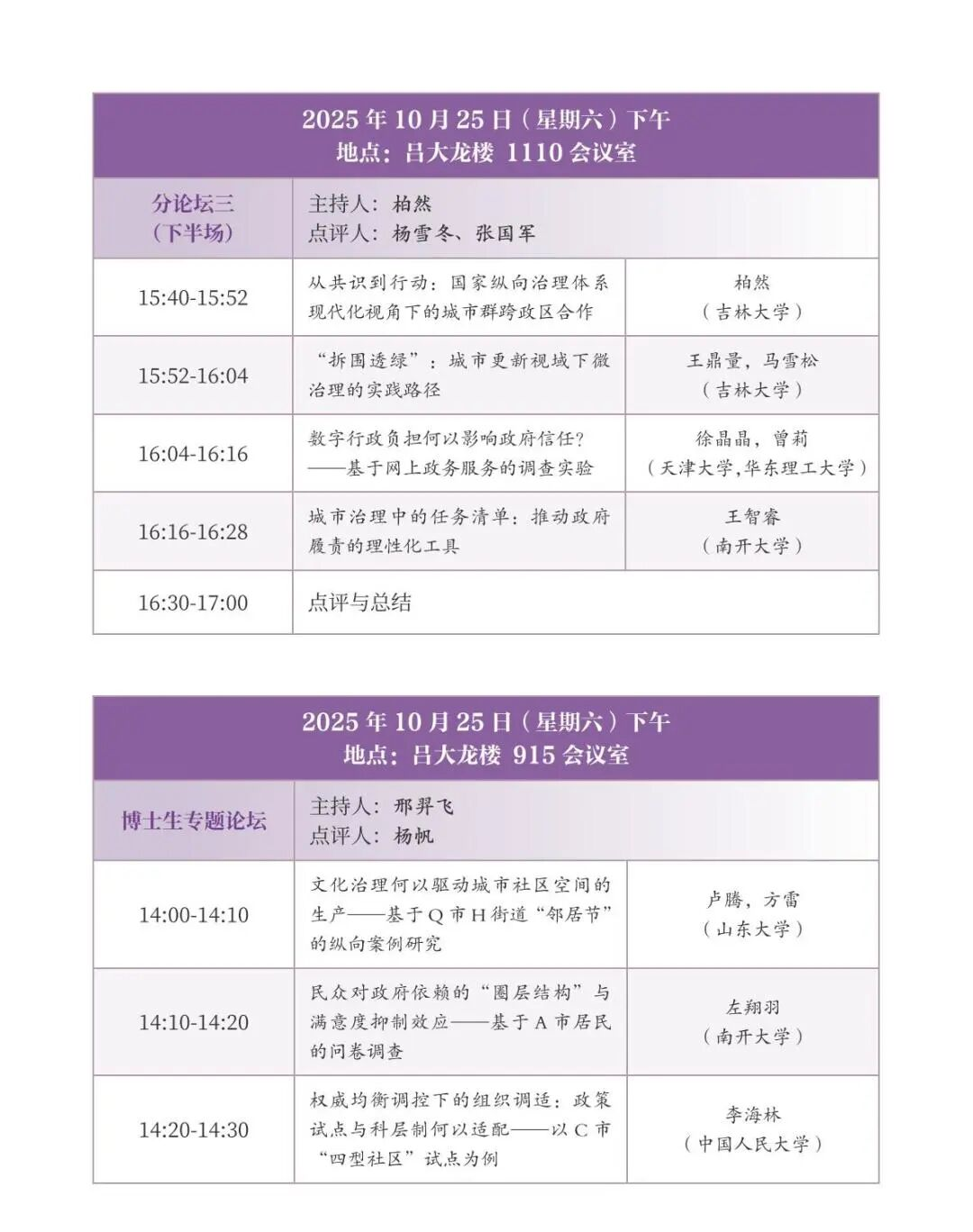会议议程|第四届城市治理与政治发展学术会议