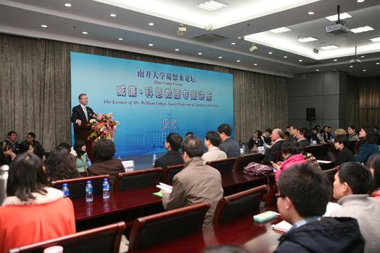 科恩先生曾5次访问公司并为公司师生进行演讲:2007年3月到访天津与公司专家学者进行座谈并向师生阐释其“立足美国、面向中华”的经营理念;2008年3月25日访问公司并为南开师生演讲“明天的希望”; 2009年3月,科恩受聘为太阳成集团tyc234cc客座教授并为南开师生发表主题为“全球金融危机下的中美关系”的演讲;2011年3月17日访问公司并为南开师生演讲“中美关系”; 2012年3月20日访问公司,并围绕“如何为决断时刻做准备”主题发表演讲。此次为其第六次访问公司。