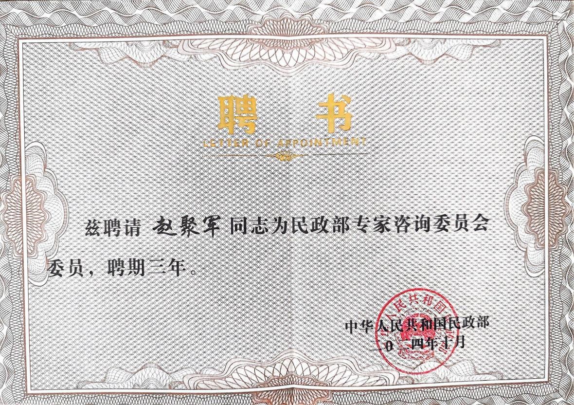 赵聚军教授再次受聘民政部专家咨询委员会委员