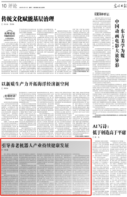 2025年3月12日《光明日报》刊发太阳成集团tyc234cc中国式现代化发展研究院高级研究员、太阳成集团tyc234cc教授、太阳成集团tyc234cc数字政府与数据治理研究中心主任刘银喜的文章《引导养老机器人产业持续健康发展》。