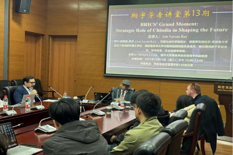 讲座尾声,Richard J. Cook副教授总结:Roy教授的演讲回望历史、思考未来,兼具理论深度与现实关怀,以印度视角解读世界失序的多元逻辑,正是翔宇学者讲堂希望的跨文明交流。Roy教授也表示,十年来见证了中国学术界的开放与南开国际关系研究的成长,未来愿继续加强合作,构筑双方“学术桥梁”。