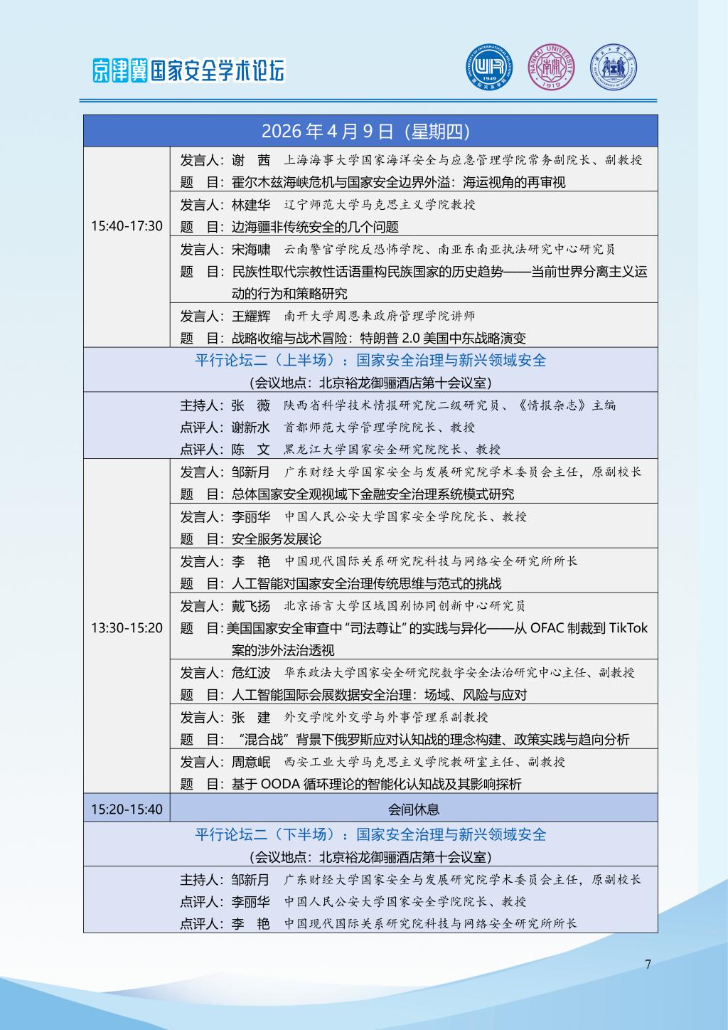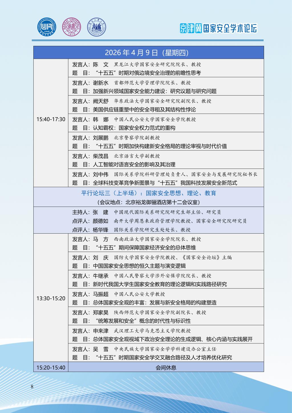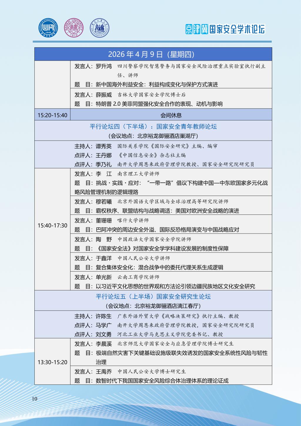 2026年京津冀国家安全学术论坛会议议程|“十五五”时期国家安全学发展的新担当