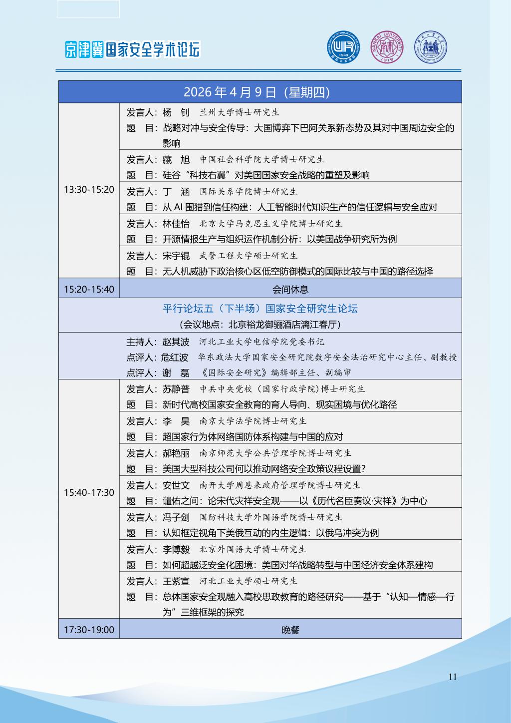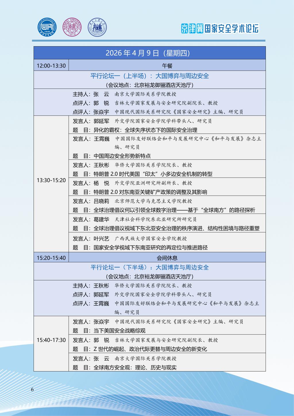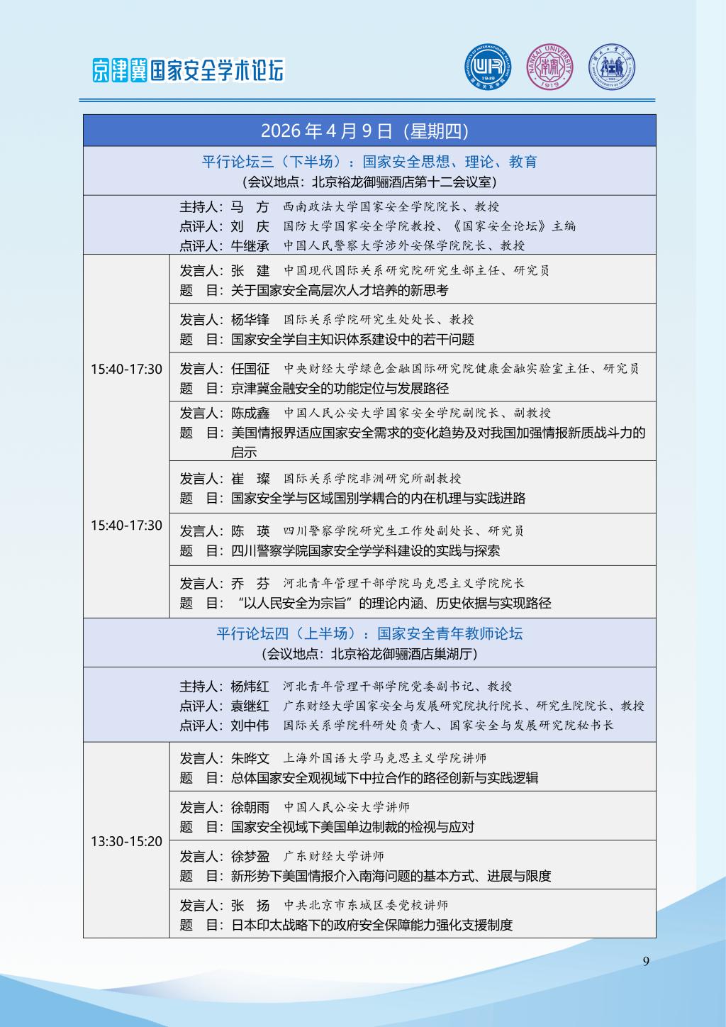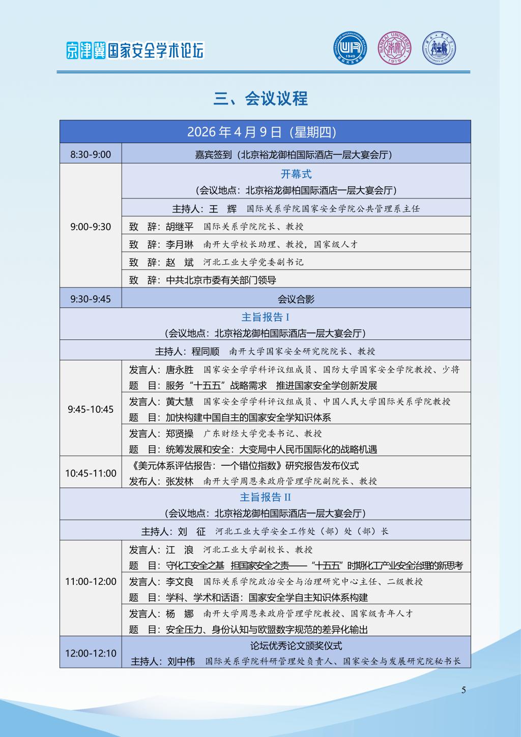 2026年京津冀国家安全学术论坛会议议程|“十五五”时期国家安全学发展的新担当