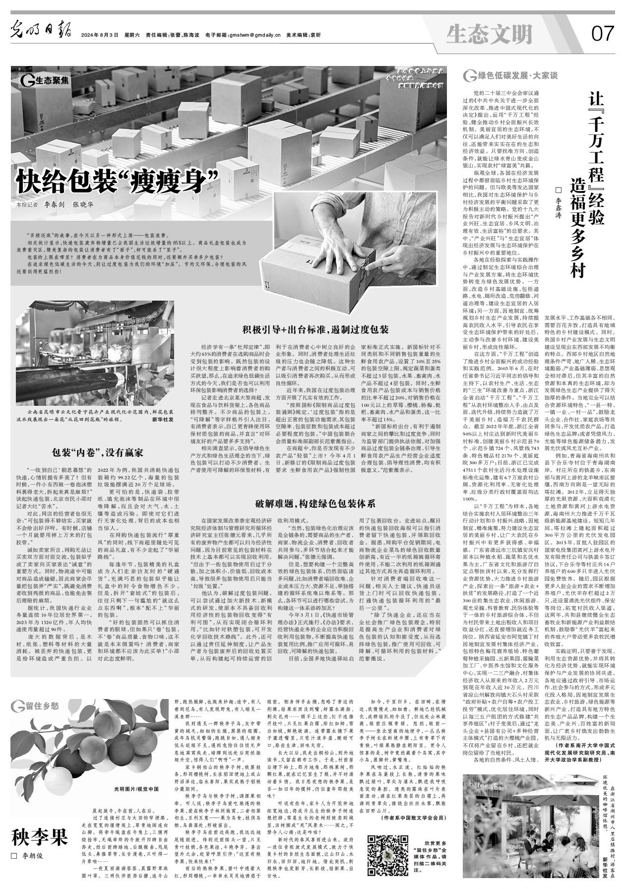 太阳成集团tyc234cc李鑫涛副教授在2024年8月3日的《光明日报》上发表文章《让千万工程经验造福更多乡村》。文章主要关注乡村全面振兴事业,主张运用“千万工程”经验,将生态优势转为绿色发展优势,实现环境保护与产业发展协同共进,打造美丽乡村。