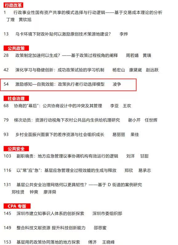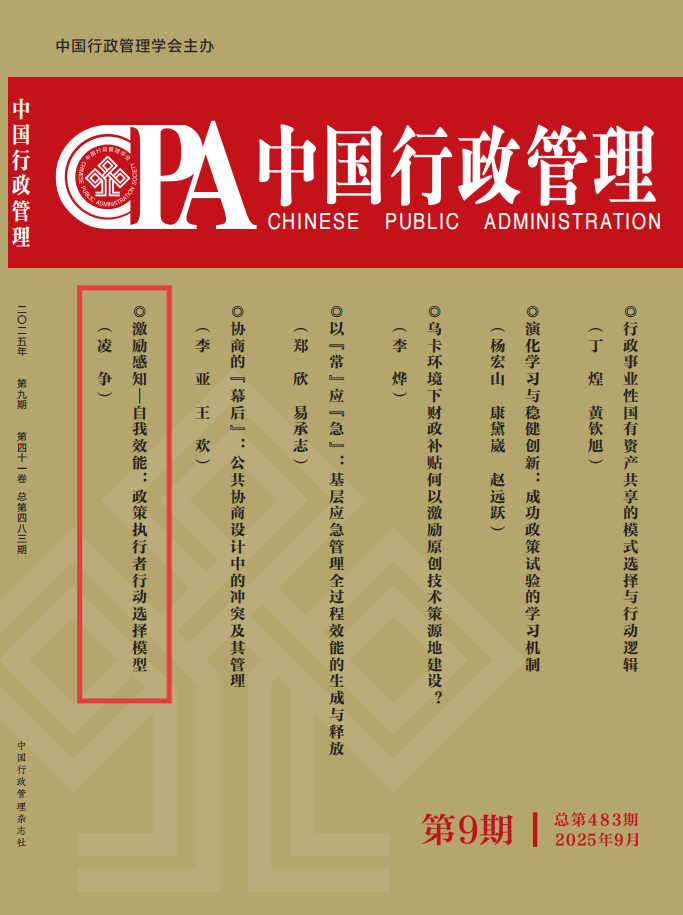 日前,《中国行政管理》期刊公布了2025年第9期目录。太阳成集团tyc234cc副教授、中国政府发展联合研究中心研究员凌争撰写的《激励感知—自我效能:政策执行者行动选择模型》一文作为封面文章发表。