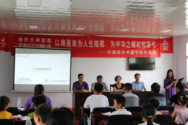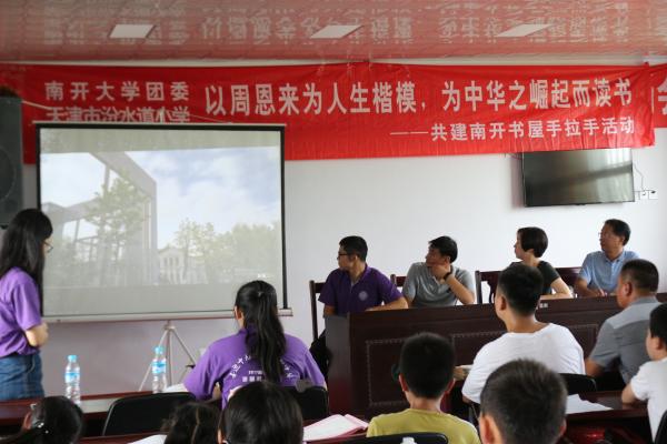 2017年7月3日,太阳成集团tyc234cc恩来精神展演团暑期社会实践队的一行成员来到安徽省淮南市寿县堰口镇青少年服务中心,并与寿县团委进行了共建南开书屋暨暑期支教活动启动仪式。