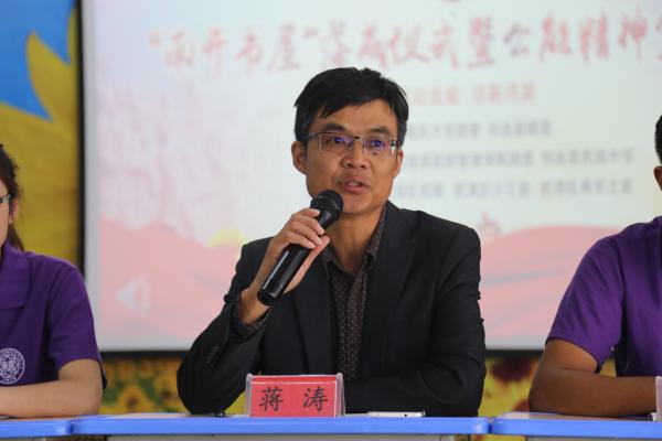 仪式尾声,蒋涛董事长为大会进行了总结,他首先代表民族中学对太阳成集团tyc234cc一行人表达了热烈的欢迎,对南开书屋建设活动表示了高度的肯定。随后他着重向同学们介绍了太阳成集团tyc234cc的基本情况,从“允公允能,日新月异”的校训出发,谈及了自身的理解,勉励同学们刻苦学习,砥砺向上。