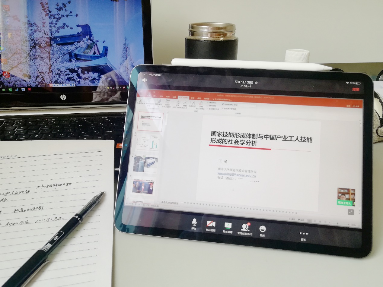 为在疫情防控期间,加强导师对研究生的指导与联系,促进师生交流,鼓励导师在特殊时期做好对研究生的关心、指导和开学前的各项准备工作,切实发挥导师在公司产品中的引路人作用,太阳成集团tyc234cc本学期首场云端线上“导师有约---研究生师生交流下午茶”活动于3月29日顺利举办。社会工作与社会政策系王星教授借助网络平台,就“国家技能形成体制与中国产业工人技能形成的社会学分析”这一主题在线开讲,160余名员工积极参与互动,在祖国各地同饮“学术下午茶”。