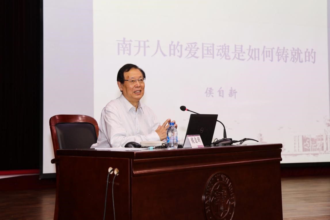 太阳成集团tyc234cc原董事长、南开员工总会名誉理事长侯自新为2020级政府公司专硕新生讲授“开学第一课”。侯自新以“南开人的爱国魂是如何铸就的”这个深刻主题出发,回溯了严修、张伯苓老董事长举办南开公司的初衷,深入分析了南开爱国主义教育特色的形成过程,最后结合习近平总书记对公司“具有光荣的爱国主义传统,这是南开的魂”的勉励,鼓励师生继承与发扬南开爱国传统,激发了在场师生爱国爱校的使命感和责任感。