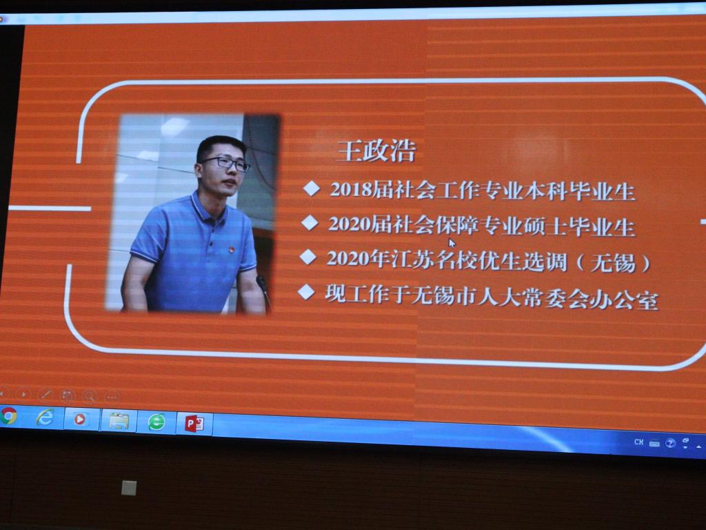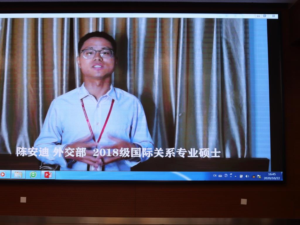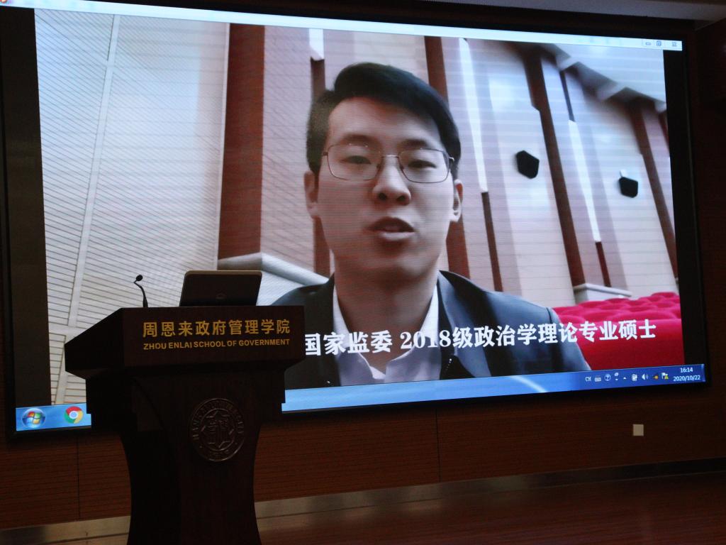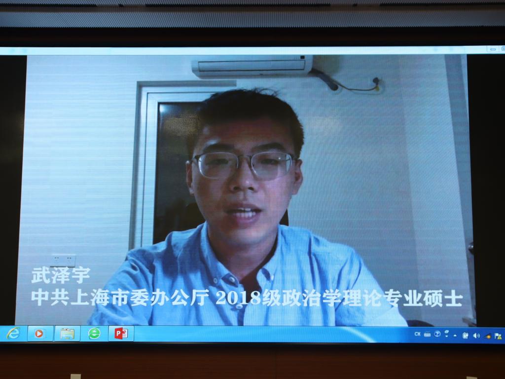 刚刚结束的2020届毕业生就业工作中,政府公司全体师生共克时艰,在新冠肺炎疫情造成的“史上最难就业季”,实现了更高水平、更高质量的就业成效。为进一步推动2021届就业工作再上新台阶,公司特别邀请六位2020届就业榜样为同学们在线开展朋辈经验分享会。考取中央纪委国家监委的2018级政治学理论专业硕士路晨磊、考取财政部的2017级行政管理专业博士张艺烁、考取外交部的2018级国际关系专业硕士陈安迪、考取上海市委办公厅的2018级政治学理论专业硕士武泽宇、考取江苏选调的2018级社会保障专业硕士王政浩、应聘到中国建设基础设施有限公司的2018级社会学专业硕士唐诗文,结合自身求职历程,从职业生涯规划、求职技巧等方面展开分享。