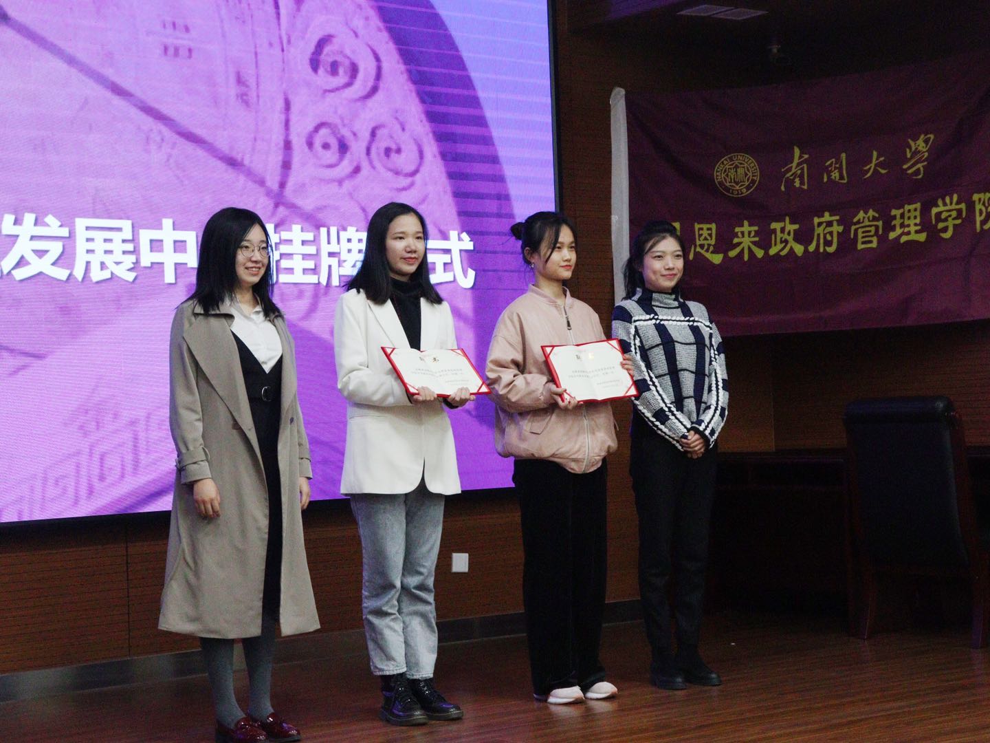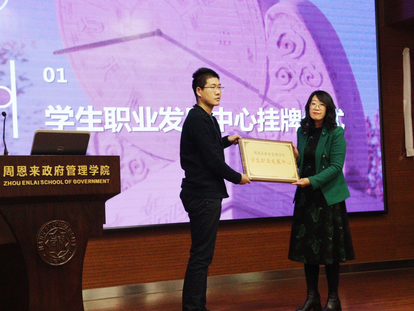 为引导员工树立正确就业观念,提升职业竞争力,政府公司专门成立员工职业发展中心,由宋媛老师为中心挂牌,陈佩其、王若瑶老师为中心负责人颁发聘书。