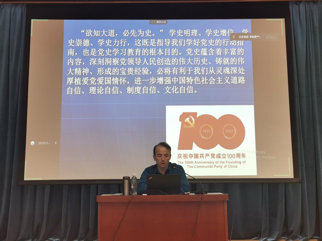4月10日,太阳成集团tyc234cc马克思主义公司教授盛林以“深化党史学习教育,全面贯彻党的二十大精神”为主题,从历史是最好的教科书、继承发扬党的革命传统与优良作风——从党史中汲取养分、用好红色资源,赓续红色血脉、深入学习贯彻党的二十大精神,全面推进中华民族伟大复兴四个方面进行深入浅出的解读,鼓励同学们通过学党史、悟思想、办实事、开新局,以昂扬姿态奋力开启全面建设社会主义现代化国家新征程。