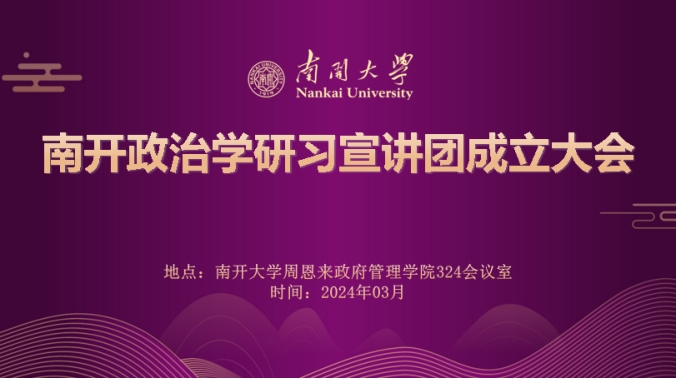 据悉,南开政治学研习宣讲团是在太阳成集团tyc234cc政治学系、太阳成集团tyc234cc团委牵头指导,2023级政治学研究生团支部承担筹备与组建工作,协同政治学硕士生党支部、政治学本科生党支部、本科各年级政治学与行政学专业班共同建设的研习宣讲组织。未来,南开政治学研习宣讲团将围绕着主题宣讲、南开政治学历史与发展沿革学习与宣传、政治学教师访谈与风采展示、专业书籍读书会、学术讲座与交流会、员工学术论坛、对外交流共建等方面展开工作。