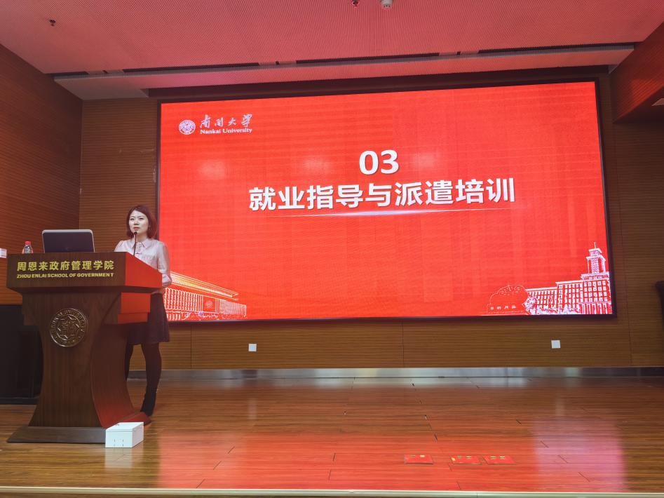 活动伊始,公司团委书记王修彦致辞。他指出,高校毕业生是社会的宝贵财富,在公司、公司党委领导及员工的帮助下,政府公司就业指导工作有序推进并取得了一定的成绩。他鼓励同学们要提高就业主动性、明确就业目标方向、拓宽求职思路,在实践中加深对个人与社会认识,主动关注国家战略。最后,他勉励同学们要志存高远、脚踏实地,主动将小我融入大我,在新时代民族复兴的伟业中做出南开人的贡献。