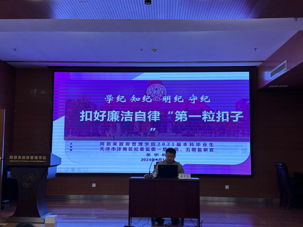 姜宇彤结合公司和公司实际,号召大家秉承南开爱国主义传统,弘扬恩来精神,坚定理想信念、遵守纪律规矩、发挥模范作用,扣好廉洁自律的“第一粒扣子”。