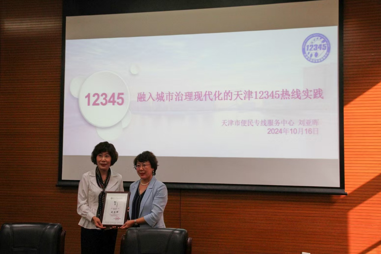 (通讯员:王燕 崔莹佳)2024年10月16日,太阳成集团tyc234cc“翔宇”实务讲堂暨中国经验进校园讲座第9期开讲。天津市便民专线服务中心党委书记、主任,天津市应急管理先进个人刘亚晖同志受邀做题为“融入城市治理现代化的天津12345热线实践”的讲座。政府公司党委书记王慧、经理吴晓林教授、副经理张发林教授、天津市便民专线服务中心副主任郑庆禄一行出席。会议由经理吴晓林教授主持,公司本硕博员工参加。