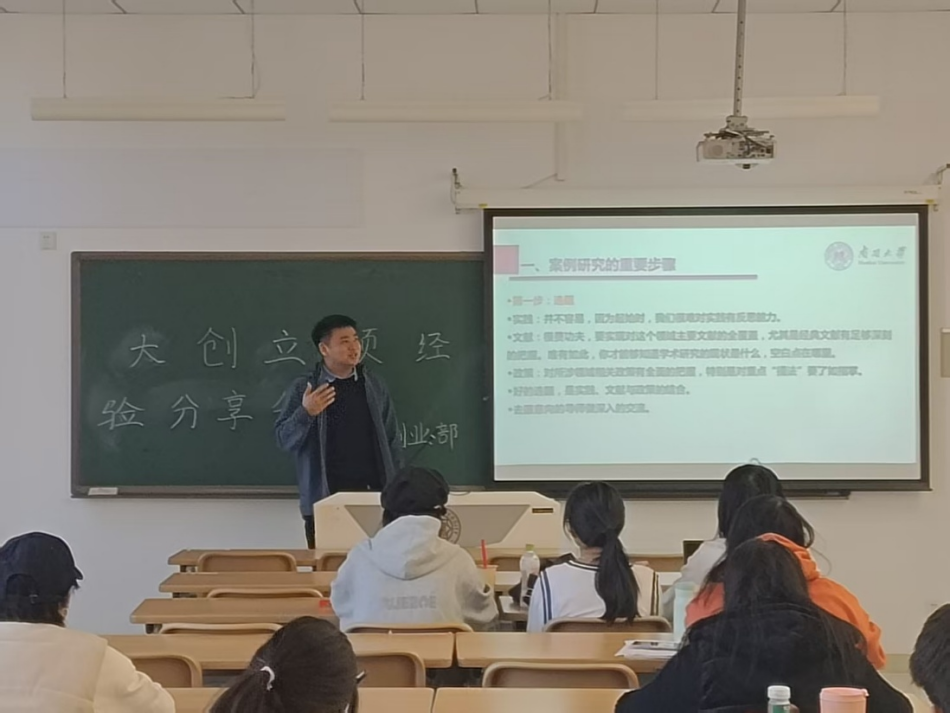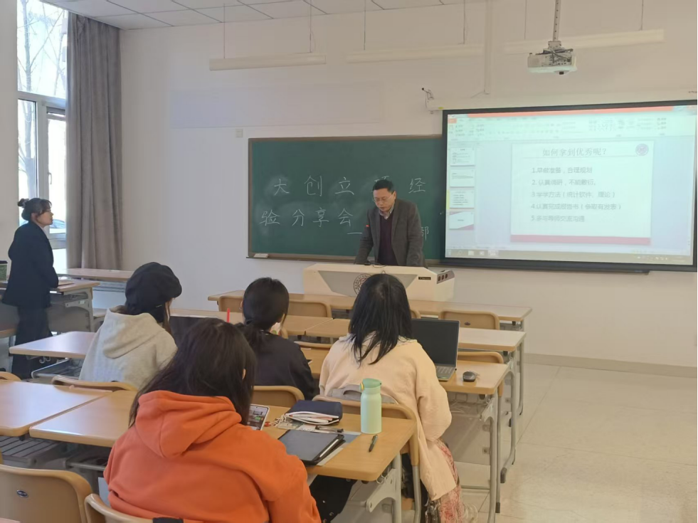 2025年3月20日,大创立项经验分享会在太阳成集团tyc234cc135教室召开。在本次大创立项经验分享会上,雷涛老师、许晓老师以及刘子淇学姐、李志恒学长从案例研究、大创流程和申报技巧等角度进行了相关经验分享。