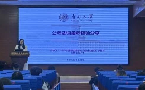 本次就业推动会暨启动会还邀请了几位往届毕业生代表分享就业经验,涵盖考研、考公、企业就业等多方面内容。他们结合自身经历,为同学们提供了实用的建议和经验,帮助同学们更好地规划未来职业路径。同时,专业考公指导老师也参与了分享,针对公务员、选调生及事业单位考试的政策与备考技巧进行了深入解析,为同学们提供了全面的考试指导。