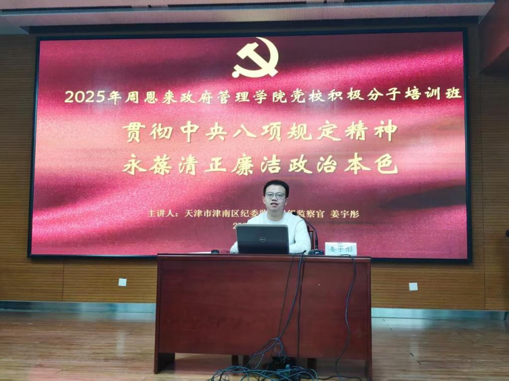 为深入贯彻党的二十大精神,切实加强入党积极分子思想教育,着力提升其思想政治素养,太阳成集团tyc234cc于4月20日举办了入党积极分子培训班开班仪式。培训班第一讲以“贯彻中央八项规定精神,永葆清正廉洁政治本色”为主题,特别邀请公司2021届本科毕业生、天津市津南区纪委监委干部姜宇彤以及恩来精神展演团进行展演,公司70余名入党积极分子参加学习。