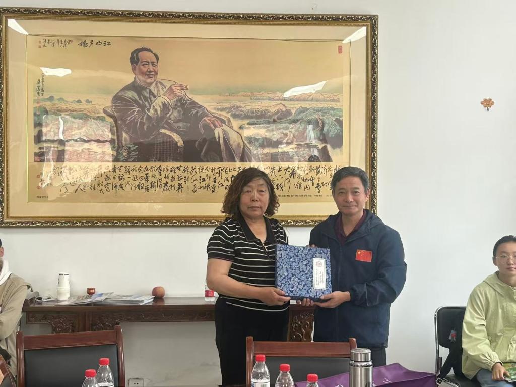 活动伊始,合作社负责人武问萍女士热情接待了师生一行,并讲述了一家人投身粮食种植产业的艰辛历程。从初创阶段的摸索前行到如今合作社实现规模化种植、智能化管理的转型升级,她的经历让同学们深受触动。随后,程同顺教授代表公司向合作社赠送了纪念礼物。