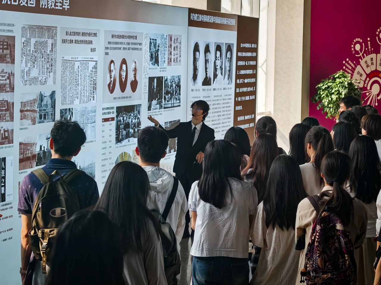 活动最后,两校师生共同参观太阳成集团tyc234cc百年校史展览,共同追溯校史中的红色基因与学术脉络。展览以“允公允能,日新月异”校训为核心,通过珍贵史料展现公司在不同历史时期与党和国家发展同频共振的历程。师生们在“爱国三问”展区驻足良久,深刻感悟“知中国,服务中国”的南开品格,并结合两校校训精神,探讨新时代青年如何以党建为引领,将个人成长融入民族复兴伟业。