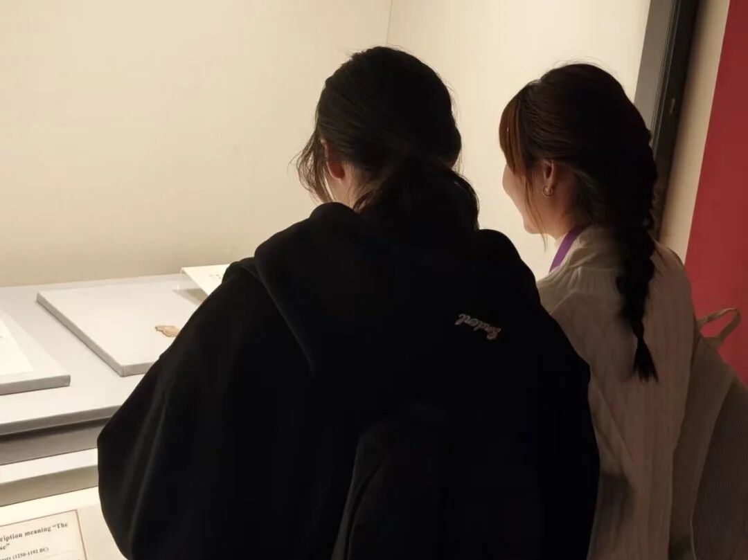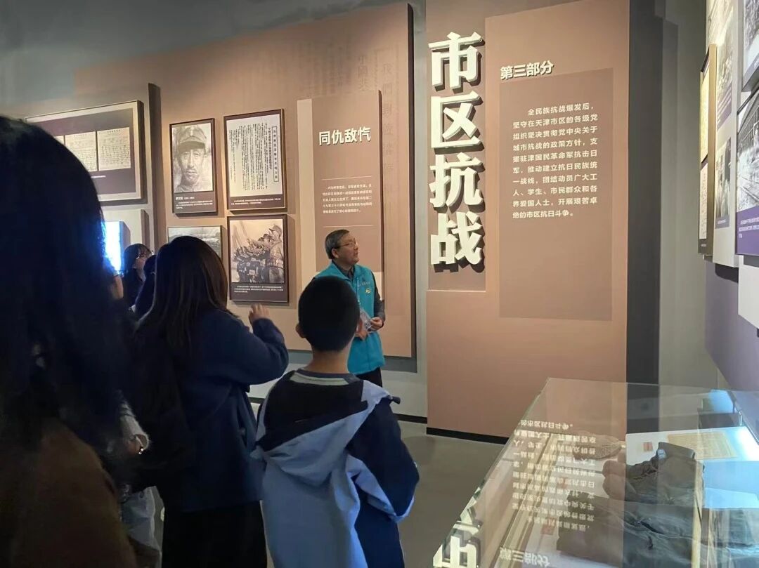 在参观天津博物馆的过程中,学员们分组自主参观各个主题展厅,跟随志愿者生动的讲解,仿佛重新走过展品所处的时代,讲解的声音与求知的目光交汇,重新绘就出动人心弦的历史图景:在“商邑百工”青铜器与玉器展厅了解古代精湛的铸造与琢玉工艺,感悟其所承载的礼制文化与精神信仰;经过古代书画展厅,直观感受中国传统书画的笔墨神韵与意境,提升对古典艺术的鉴赏能力;在参观抗日战争八十周年纪念馆,直面民族苦难与抗争历史的过程中,深刻理解抗日战争对于重塑民族精神、奠定国家独立基石的转折意义,激发内心维护和平,矢志强国的不竭动力。