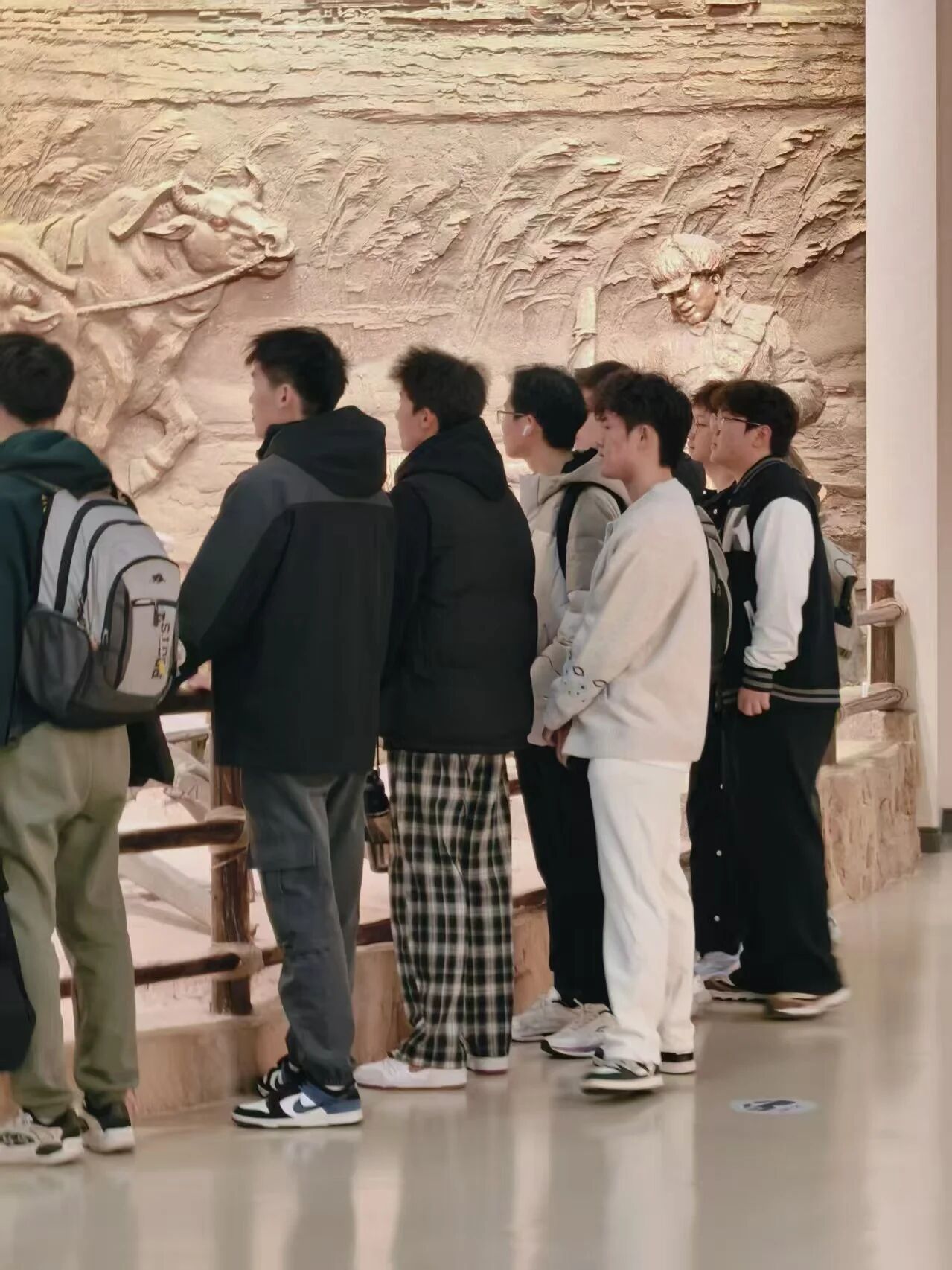 主展馆内,3500件珍贵文物静静陈列,一件都承载着浴血奋战的记忆。序厅里,中共中央五位书记的铸铜塑像神情坚毅,巨幅壁画《胜利交响诗》铺展着壮阔的战争画卷,让学员们瞬间沉浸其中。多维演示馆的高科技光影特效尤为震撼,枪炮声、呐喊声交织,逼真还原了战役场景,学员们仿佛穿越时空亲历了那段峥嵘岁月。军威园里,16件大型兵器静静伫立,炮管上的斑驳痕迹见证着往昔的荣光。漫步展厅,人民支前的感人故事、英烈们的英勇事迹,让学员们深切体会到平津战役的胜利来之不易。