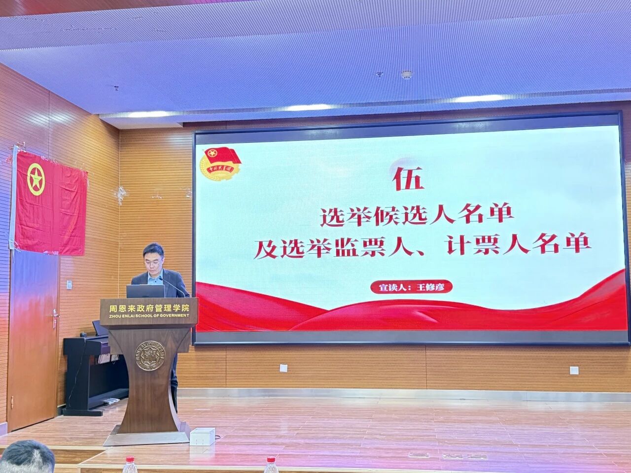 公司团委书记王修彦老师宣读了本次选举的候选人名单,以及总监票人、监票人、计票人名单,随后组织全体代表对总监票人、监票人名单进行表决,名单顺利通过。