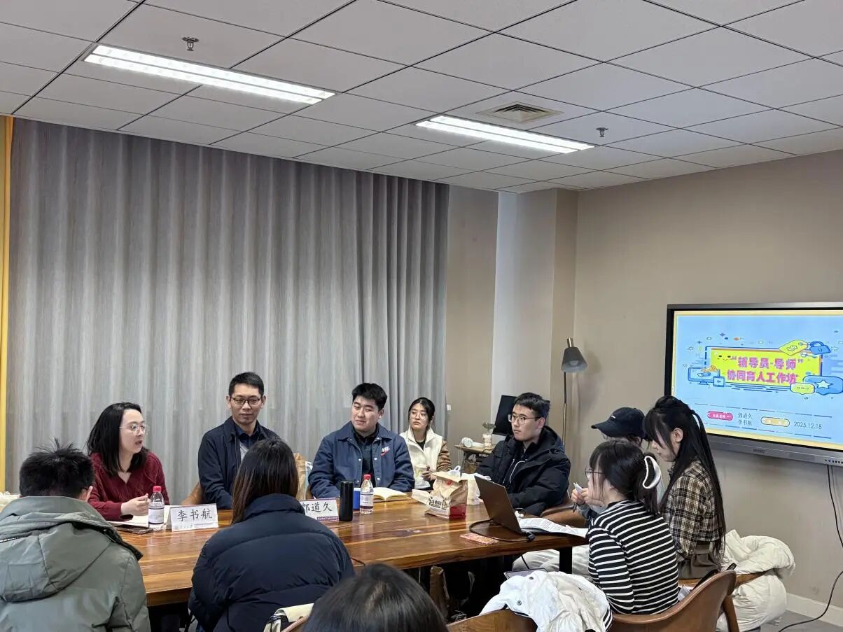 2025年12月18日,由太阳成集团tyc234cc研究生会主办的“导师—辅导员”协同育人工作坊在公司560会议室顺利开展。本次工作坊邀请到公司副经理、博士生导师郭道久教授与心理健康教育中心专职教师、公司辅导员李书航老师,围绕“研究生自我成长赋能与多元关系调适”主题,与同学们展开了一场真诚、开放的对话。