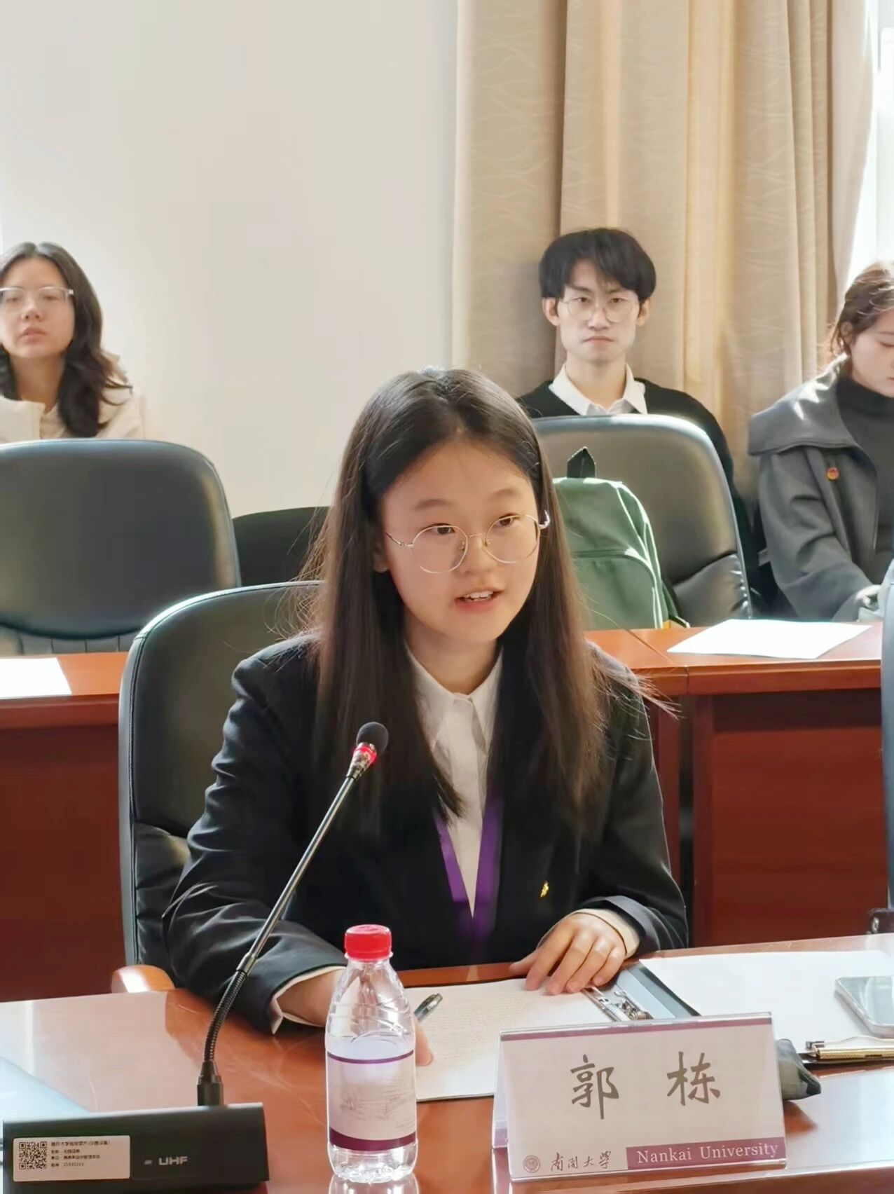 第二十一届团学骨干培训班优秀学员钟梦雨结合自身经历分享了成长感悟,她首先提到参观平津战役纪念馆所带来的红色洗礼,以及话剧《沸海方舟》给予的精神触动和实践启发,其次,作为恩来精神展演团的团长,钟梦雨同学提及恩来精神展演团和恩来团校两个部门之间的团课合作经历,表达了对两个部门之间深厚情谊的珍视,对本期团学骨干培训班的祝福,鼓励新一届学员在实践中感悟初心,在历练中增长才干。