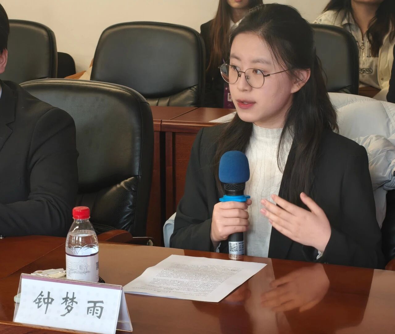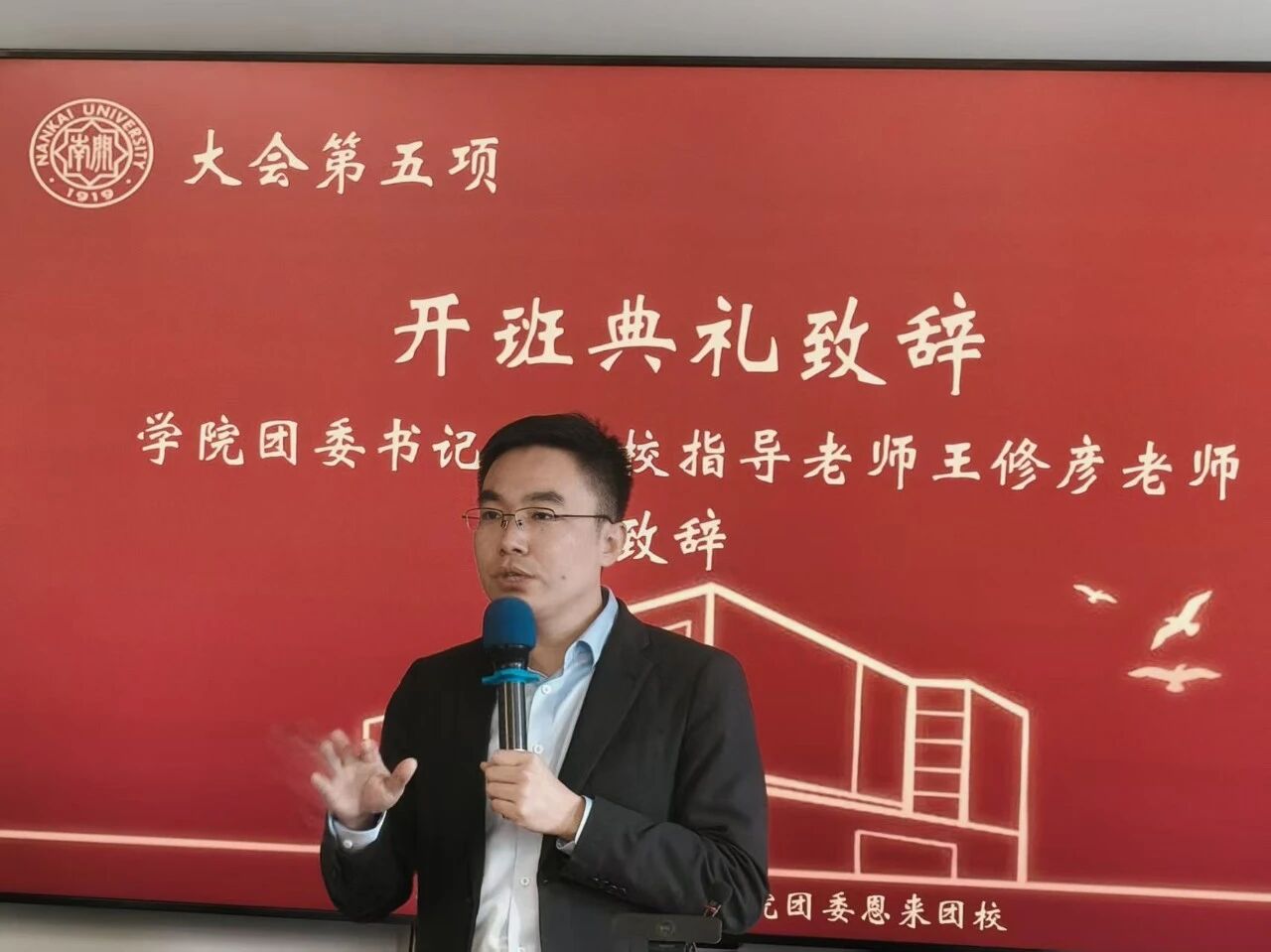 随后,主持人依次介绍出席本次活动的嘉宾:公司团委书记王修彦老师,第二十一届团学骨干培训班优秀学员钟梦雨,恩来团校执行董事长郭栋,以及恩来团校执行副董事长蓝嘉轩、付萧瑞、石雨馨。