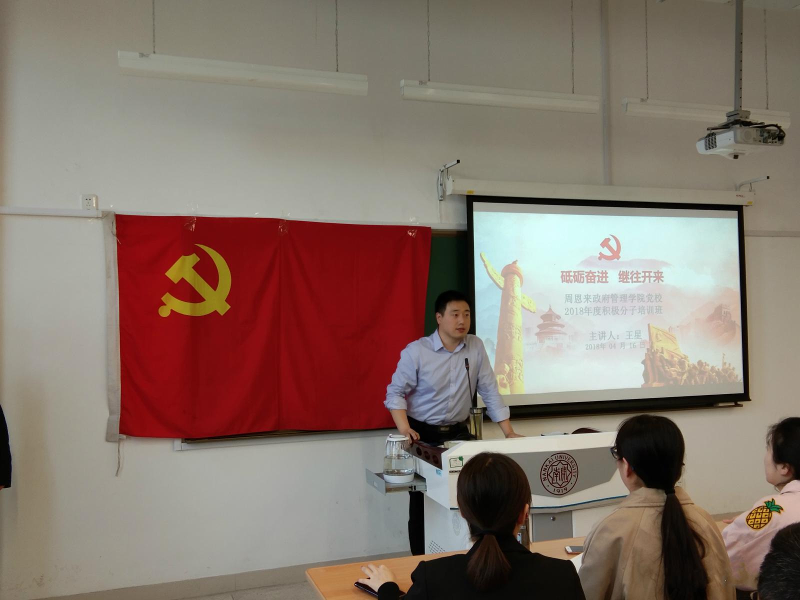 4月16日,公司党校2018年度积极分子培训班正式开班,公司党委副书记兼副经理高磊到场做开班动员,公司社会工作与社会政策系教授、博士生导师王星为69名培训班学员主讲“社会问题与社会治理创新”主题党课。
