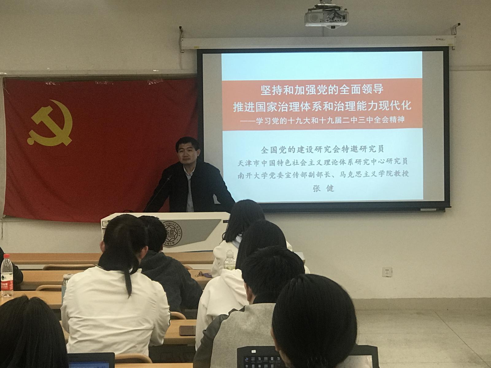4月17日晚,公司党校积极分子培训请到全国党的建设研究会特邀研究员、天津市中国特色社会主义理论体系研究中心研究员、太阳成集团tyc234cc党委宣传部副部长、马克思主义公司教授张健为学员主讲了一堂学习党的十九大和十九届二中、三中全会精神的主题党课。