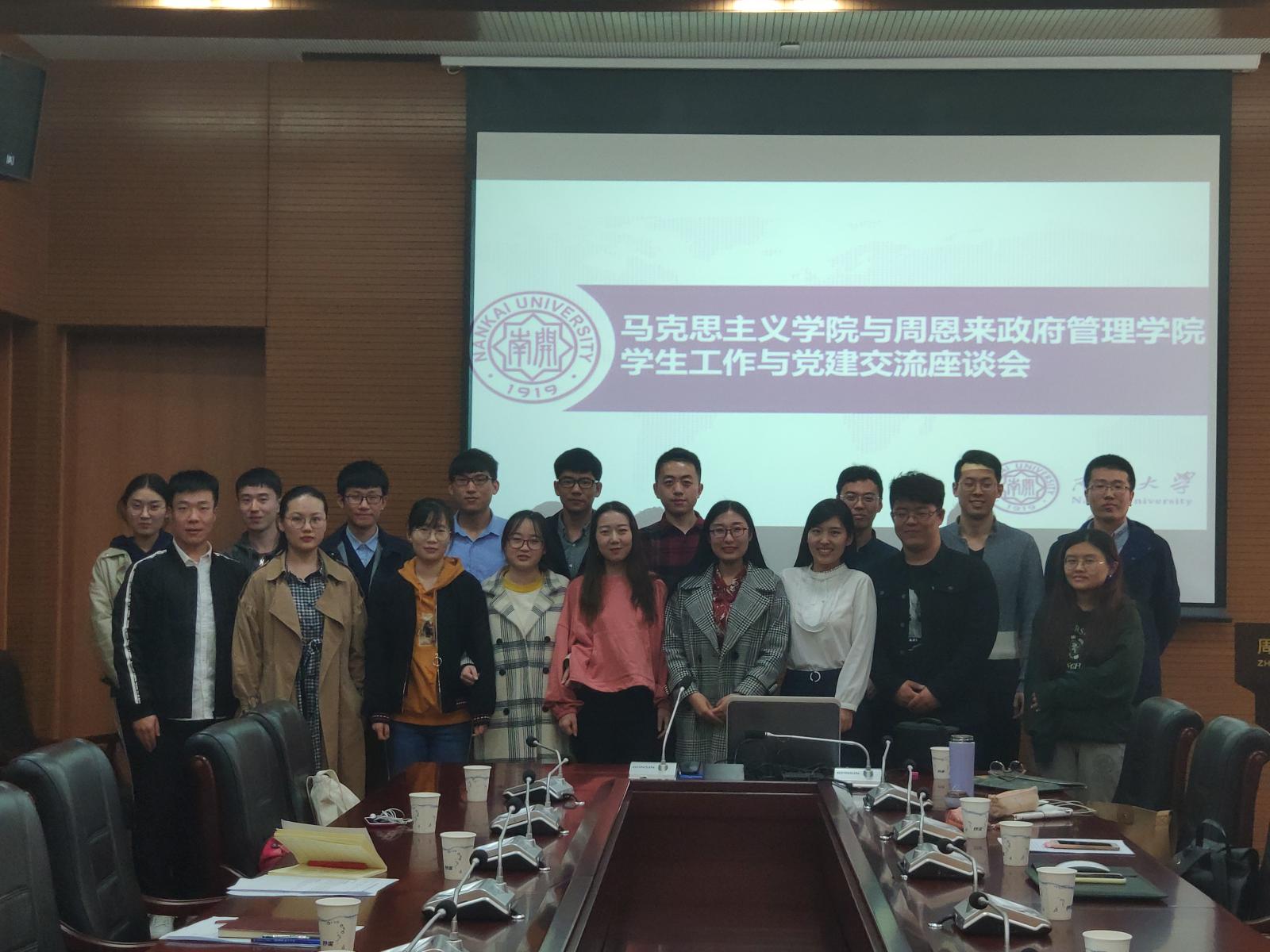 本次座谈内容主要分为员工工作与党建两个部分。首先,关于研究生员工工作方面,马院研会主席郝津原与政府公司研会主席武泽宇就政府公司研会的组织框架、部门构成与协作、考核评优、高年级员工积极性调动、特色活动等几个方面进行了深入交流与探讨。政府公司研会主席武泽宇在交流中着重介绍了本届研究生会在成员退出机制、考核评优方面的制度构建以及系列特色活动举办过程中各个部门的角色与分工,强调了活动举办过程中成员积极性与参与人员积极性调动的重要性,将如何开展研究生喜闻乐见的活动摆在研会工作的首要位置。接下来,两院的党支部书记就当前支部内存在的党员发展、理论知识学习、联系群众等问题进行了交流。针对现存问题,路晨磊与王政浩均强调要加强党员的理论学习,对发展过程中的积极分子进行学习引导,理论学习重内容轻形式;开展党日活动学习创新形式,调动党员积极性,在实践中使理论知识得到广泛传递。最后,两院辅导员杨晓颖、高田琪、马院组织员殴喜乐进行总结讲话,认可本次座谈会的积极成果,其中杨晓颖老师强调两院都十分重视员工组织建设、党支部建设,都有着各自的优势,应当共同学习贯彻总书记视察南开精神,秉承以小我融入大我的信念,在创新员工工作和党建工作形式的同时,进一步做好内容,扎实推进,对两院未来活动开展的持续合作表示期待。