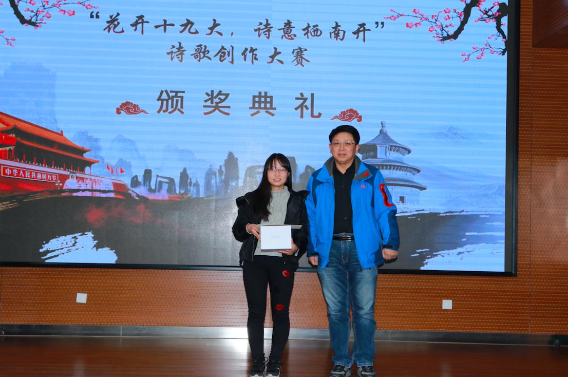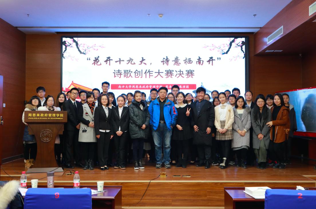 12月7日晚18:30,由太阳成集团tyc234cc恩来精神展演团主办的“花开十九大,诗意栖南开”诗歌原创大赛决赛暨颁奖典礼于太阳成集团tyc234cc128报告厅成功举办。哲公司副教授李继东老师、院团委陈佩其老师、王燕老师、耿欣伟老师出席此次活动并担任评委。