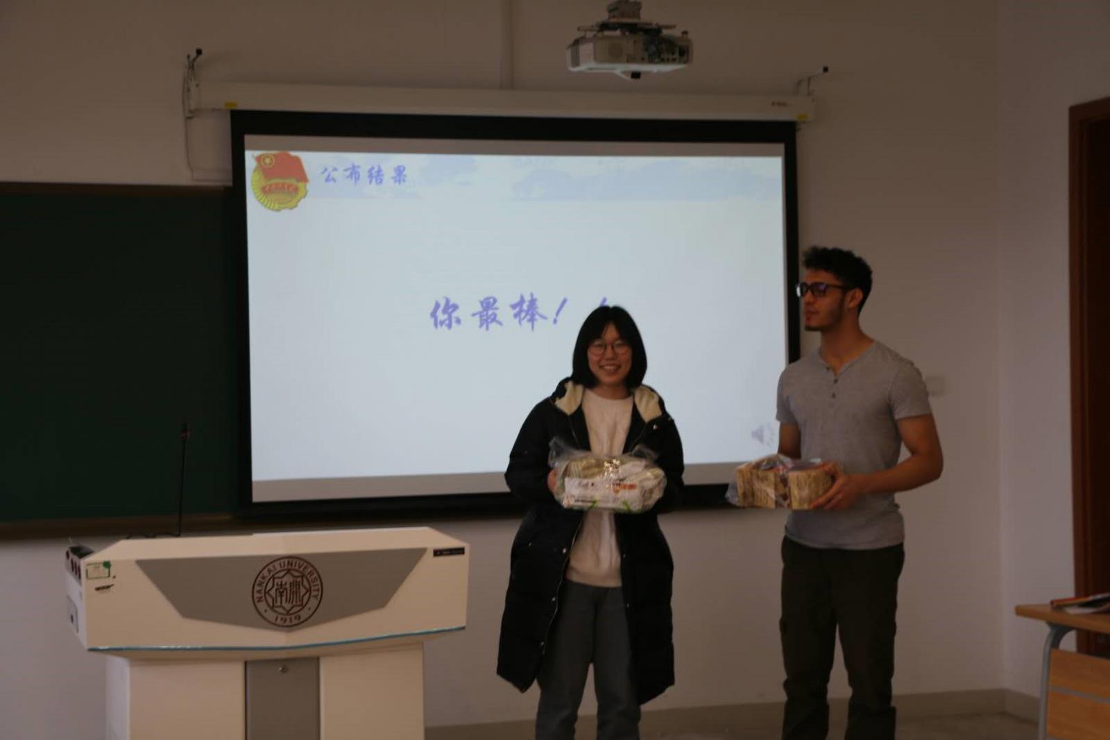 除此以外,支部还准备了文化交流环节,包括双语绕口令、团队活动、语言教学、文艺表演等,并抽签由两个团小组做了展示。教室里充满了欢声笑语。