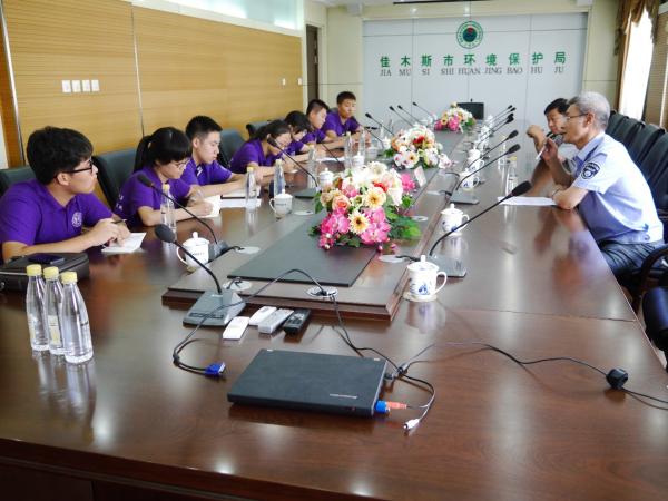 8月4日,为了从宏观层面更好地了解湿地保护现状及相关政策,实践团队调研的首站选择佳木斯市环保局。在这里,实践团队受到了市环保局局长的亲切接待,并针对时下热议的“退耕还湿”、“保护区申报”等相关问题进行详细座谈。结束座谈后,在相关领导带领下,实践团队参观了佳木斯环境实时监测站、佳木斯环境实验室等。
