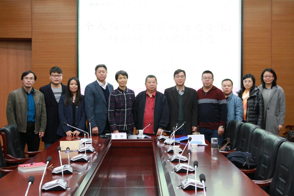 (通讯员:潘佩蓉)2017年11月22日下午,北京大学社会学系张静教授应邀做客南开社会学“员工沙龙”,进行了题为“个人与组织关系的历史变化:经验问题和理论问题”的讲座,吸引众多师生的积极参与。此次讲座由社会学系教授、副经理赵万里老师主持。