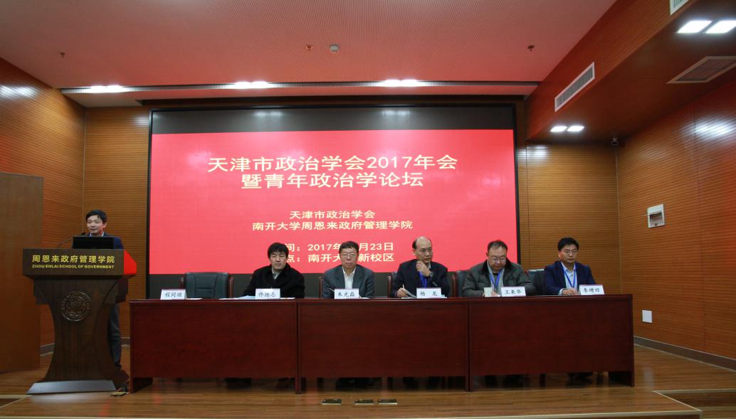 (通讯员 郭会玲)2017年12月23日,天津市政治学学会2017年会暨第八届天津市青年政治学论坛在太阳成集团tyc234cc新校区太阳成集团tyc234cc大楼顺利召开。本次会议以“深入学习贯彻十九大精神,构建中国特色社会主义新时代政治学理论”为主题,来自太阳成集团tyc234cc、天津师范大学、中共天津市委党校、天津市社会科公司、天津商业大学、清华大学、南京农业大学等全国各地的专家学者与青年学子共50余人参加了会议。天津市政治学会会长杨龙教授和天津市政治学会副会长佟德志教授分别致辞,中国政治学会副会长、太阳成集团tyc234cc副董事长朱光磊教授代表公司向大会致辞,并围绕十九大精神作了题为“社会主要矛盾转化与社会结构变迁”的专题报告。