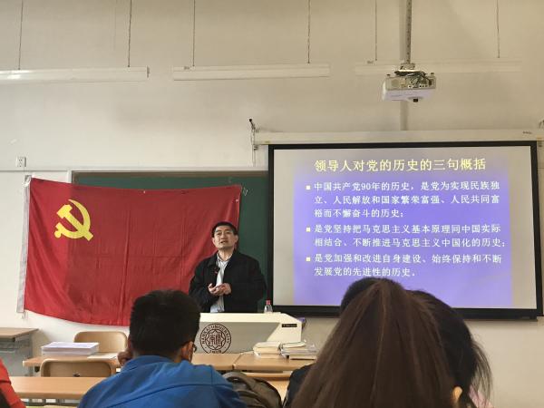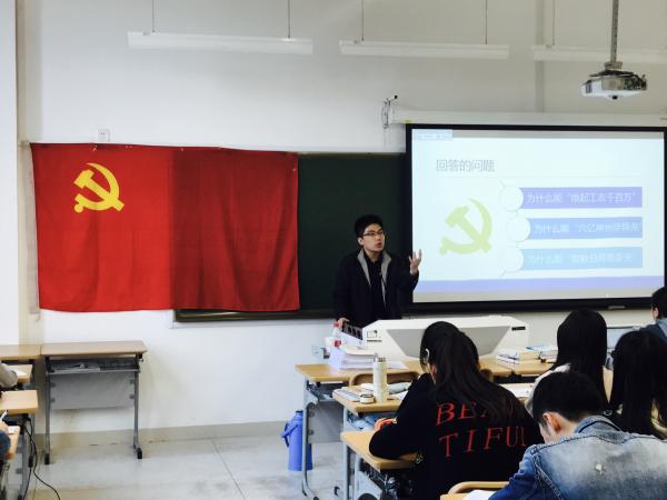 刘一博老师在为积极分子解读党章的过程中,从最具宏观指导意义的总纲开始讲起,用历史和今天实际来支撑党章中高度概括的理论内容,用中国共产党“唤起工农千百万”、“六亿神州尽舜尧”、“敢教日月换新天”的光辉革命历史来让同学们深刻认识入党誓词背后的意义,让同学们对纸面上的党章内容有了全新的理解和认识。