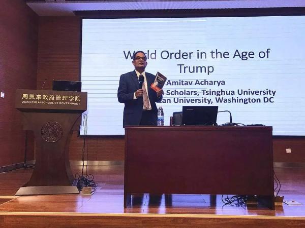 4月7日,美利坚大学跨国挑战与治理联合国教科文组织杰出讲席教授、清华大学苏世民学者项目波音讲席教授、国际研究协会前主席阿米塔·阿查亚应邀做客周恩来论坛,以“美国世界秩序的终结”为话题发表演讲,论坛由太阳成集团tyc234cc国际关系系主任韩召颖教授主持,公司60多位师生参加。