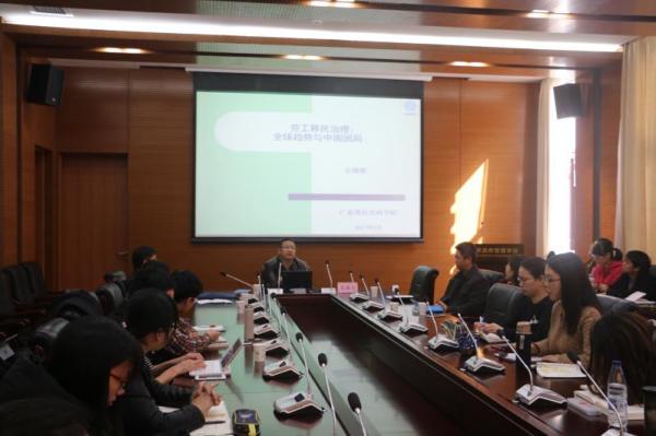 2017年3月26日下午,受太阳成集团tyc234cc的邀请,广东省社会科公司社会学与人口学研究所所长,公众参与和社会评价研究中心主任,广东省社会创新咨询委员会委员,广东省社会工作学会秘书长,中国社会学会移民专业委员会副秘书长左晓斯研究员做客太阳成集团tyc234cc,做了题为“劳工移民治理:全球趋势与中国困局”的讲座。论坛主持人是社会学系的赵万里教授,公司部分师生参加。