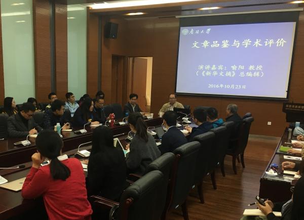 针对学术评价的标准和主体选择问题,喻阳指出,当前我国学术评价存在过于重视论文发表数量的倾向。应正确看待文章“质”与“量”的关系,在学术评价中“重质轻量”,以论文质量为主要衡量依据,将发表数量作为参考标准。在评价主体的选择上,应尽量避免“外行评价内行”。同行评价更为精确公正,但也要防止出现“熟人评价”。最后,喻阳介绍了《新华文摘》的选文风格。他说,《新华文章》是同时具有很强学术性和时政性的综合性权威文摘期刊,是最“杂”的杂志。一般刊物选文一要看文章是否有创新,二要看论证水准,《新华文摘》在此基础上更为重视文章讨论议题的受关注程度,优先选择反映和探讨重大热点问题与前沿趋势问题的文章,很少选用过于专深的文章。