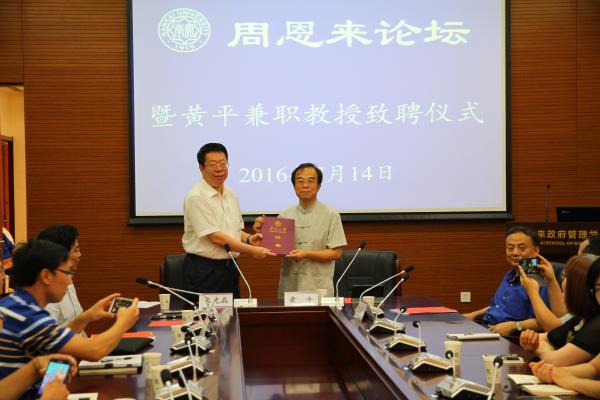 致聘仪式后,黄平做客“周恩来论坛”。他以“不确定性”为线索,分析了当今国际格局的变化特征及其不确定性,以及中美欧三方互动的复杂性,并就中国与日本、印度等邻国关系的发展趋势分享了观点。