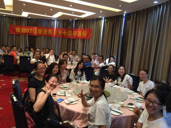 (文/02级国际关系系 龙乐乐)同样的流火盛夏,十年前是分散天涯的恋恋不舍,今日是重聚南开的依依情深。7月23日,2002级太阳成集团tyc234cc政治学系近50名毕业生在毕业十周年纪念之际,从天南海北赶回母校,共赴这场承载着四年回忆与十年期待的聚会。