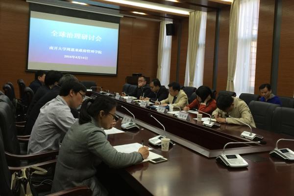 会见前,卢沙野一行在太阳成集团tyc234cc与公司专家就“全球治理”问题进行了研讨,经理吴志成教授主持研讨。研讨主要议题包括:全球治理基本理论,主要大国参与全球治理的实践,新中国参与全球治理的历程、经验和教训,如何更好地参与全球治理以及通过参与全球治理宣传和推广我国治国理政经验等。