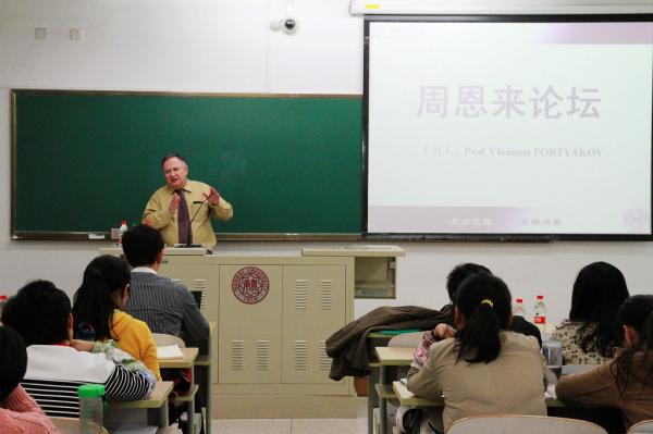 (通讯员 李金潼)10月23日,俄罗斯科公司远东研究所副所长、《远东事务》(Far Eastern Affairs)主编弗拉基米尔·波特雅科夫(Vladimir Portyakov)教授做客“周恩来论坛”,给南开师生带来一场题为“俄罗斯的中国对外关系与对外政策研究”的精彩讲座。讲座由太阳成集团tyc234cc副经理孙涛教授主持。