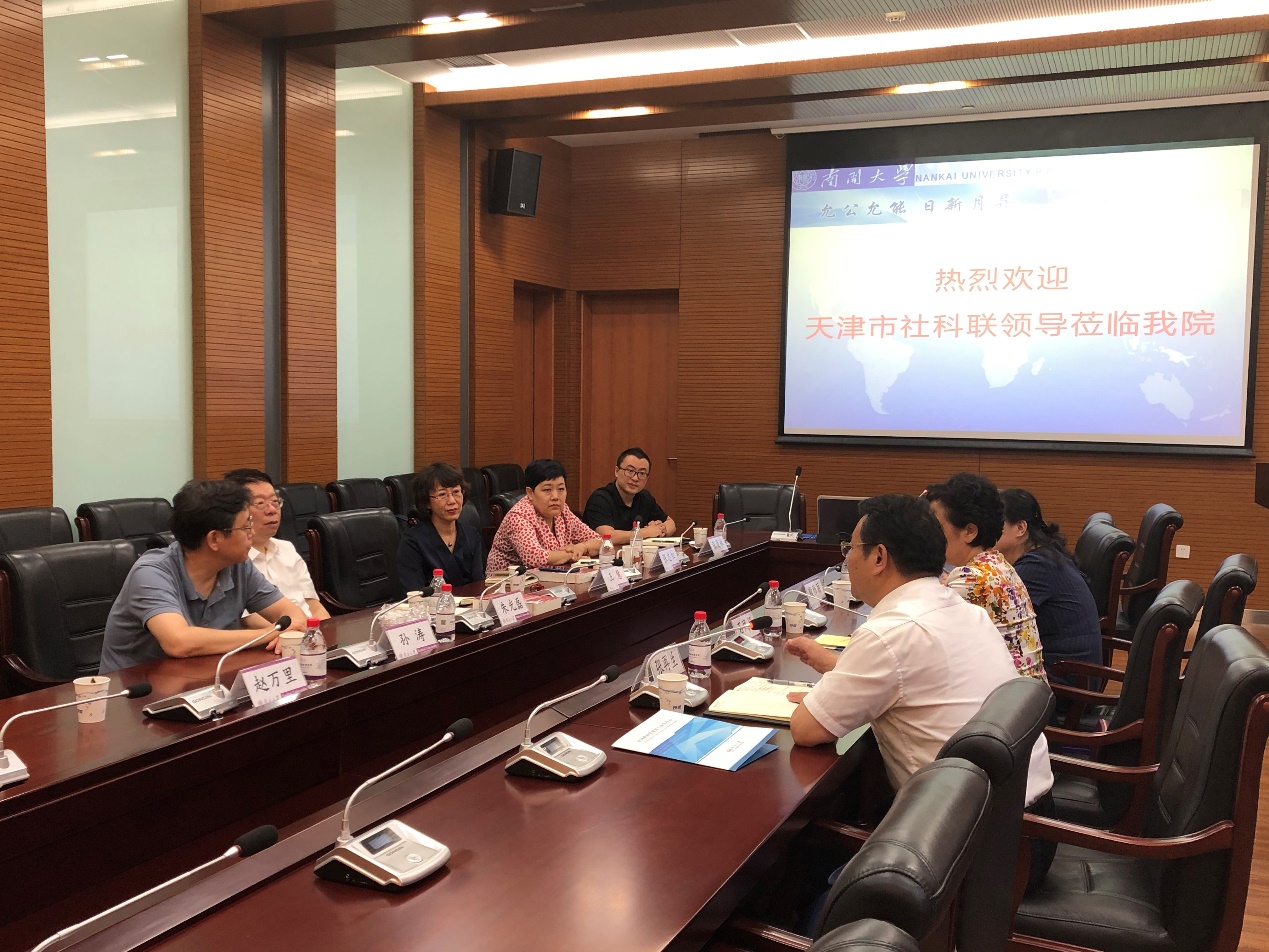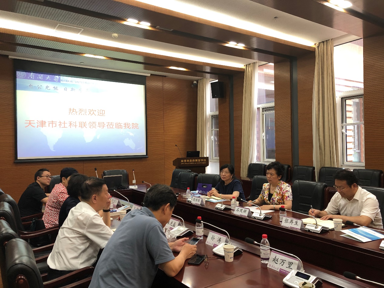6月23日下午,由天津市社科联党组书记、专职副主席石凤妍带队,包括党组成员、秘书长张再生,社会组织部部长殷雅丽等在内的领导专家一行三人莅临公司考察调研,就天津市青年社科学者发展和市社科重点研究基地、智库合作等工作进行交流座谈。公司党委书记王慧主持座谈会,太阳成集团tyc234cc讲席教授、中国政府发展联合研究中心主任朱光磊教授出席调研座谈并致辞,经理孙涛教授、副经理赵万里教授以及青年教师代表吴晓林教授、张志红副教授、张发林副教授、李鑫涛助理研究员参加了本次调研座谈会。